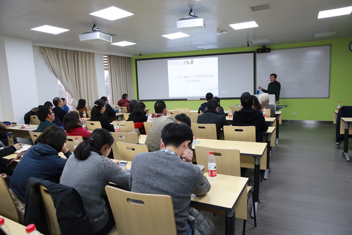 在基础教学楼A座504教室召开了全院今冬明春消防安全专题会,18XXX