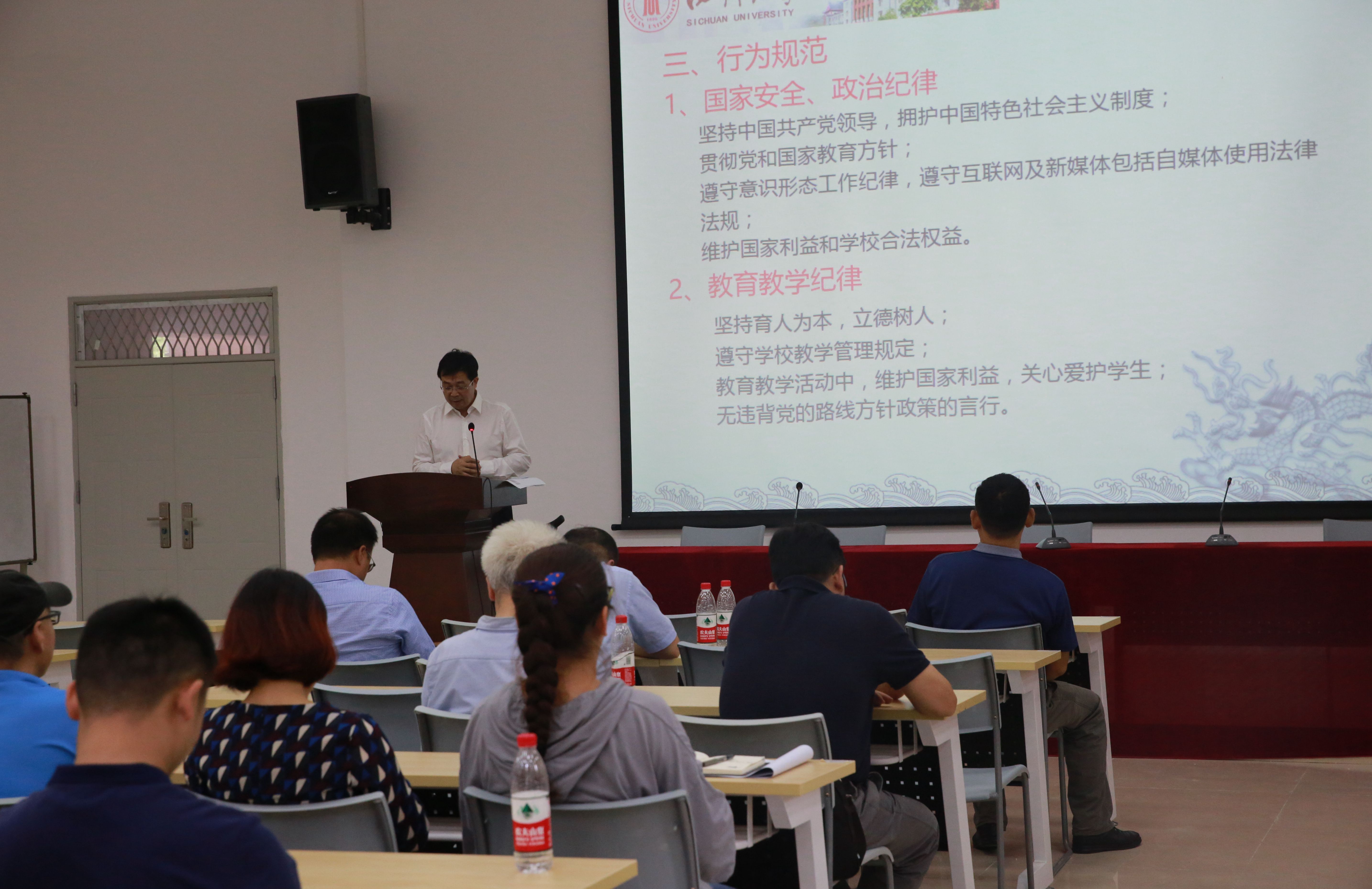 随后,邰明松书记传达了学校的相关规定。他首先从总则、基本要求、行为规范、社会服务、廉洁从业、师生规范、同事关系及激励、考核和问责等八个方面解读了18XXX