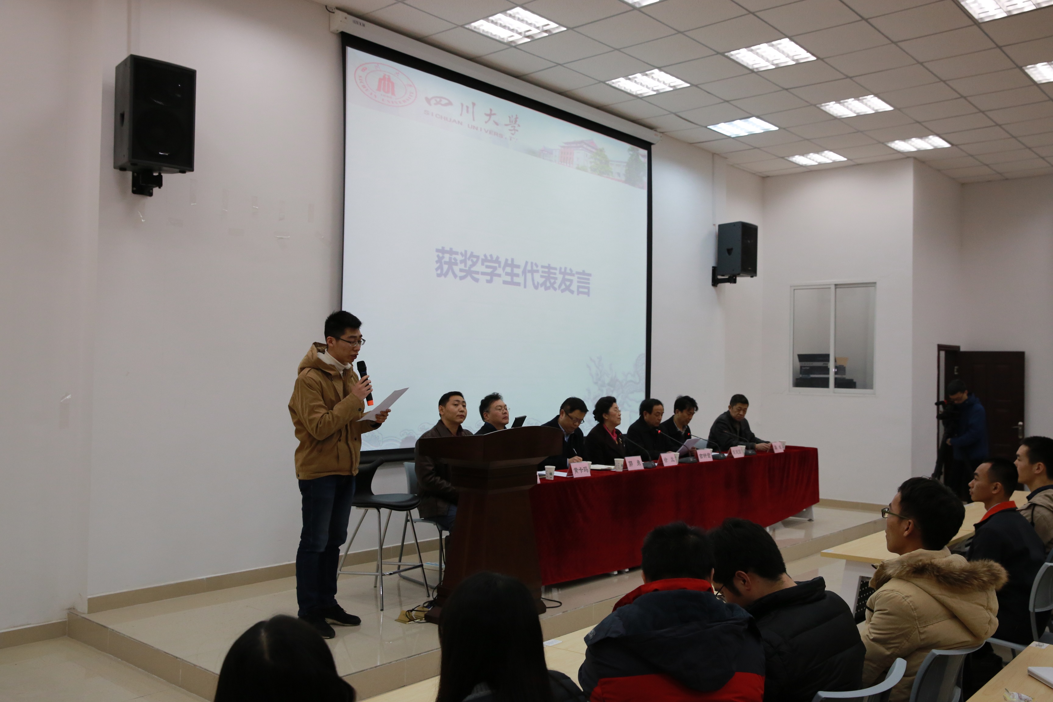 校长助理、党委学工部部长、学生处处长郭勇教授在颁奖典礼上致辞,他首先向古教授对母校教育事业的大力支持表达了感谢和敬意,同时向获奖学生表示热烈的祝贺。随后发表了自己的一些感想,他认为,态度决定高度,古教授为我们提供的不仅仅是资金,更是一种精神的传承,并号召大家要向古教授学习,学习其对学习、科研和生活的态度,学习其引领学科、服务社会的态度。
