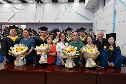 在热烈的掌声中,毕业生代表向老师和参加毕业典礼的家长们献花,感谢老师们在学生求学路上的辛勤教导和家长们的养育之恩。