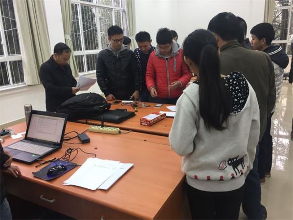 的10余支参赛队伍准时到达测试点开始调试作品。八时三十分,各类别作品的评测工作井然有序地展开。评审老师们耐心地听参赛队伍的解说,仔细观察各队伍的演示,对作品中的优、缺点分别进行了点评,鼓励大家再接再厉。创意类参赛队伍派出代表,对小组研究成果作了详尽的ppt展示,面对评委老师们的提问应答自如。待所有参赛作品测试完毕,本届“五粮春杯”科技创新大赛圆满结束。随后12月2至3日,评委老师们根据各参赛作品的现场演示情况及作品报告书进行了细致的评分工作,最终评选出作品类一等奖3组、二等奖3组、以及优胜奖2组,创意类二等奖1组。