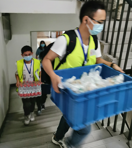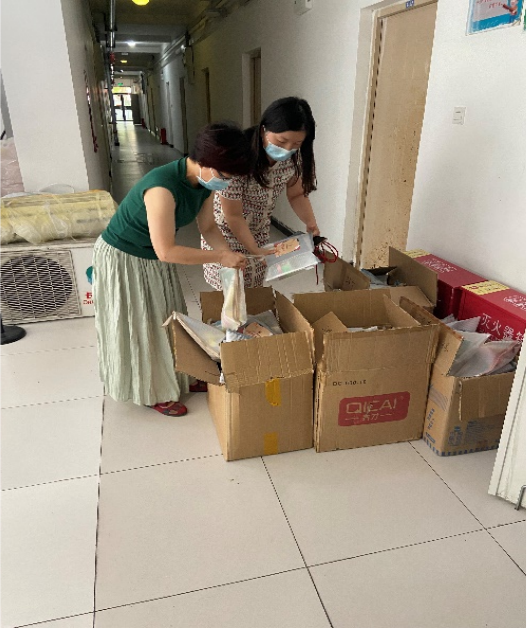 志愿者队伍负责为封控三天的同学们落实餐食、生活用品等输送工作。何惠老师进驻学校三天,除了解决隔离同学的日常生活问题,还积极关心学生,并为学生发放减压包缓解心理压力,赢得学生的理解、支持和感谢。