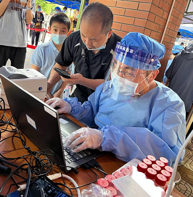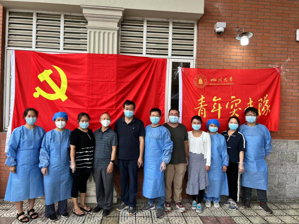党委书记邰明松、副书记廖勇明、副院长卿粼波、工会主席杨晓敏、宁芊、申俊飞、卢萍、杨红、陈林、杨华、李运国等11位教职工组建的第一批教师志愿者服务队参与了校内核酸检测现场的志愿服务工作。