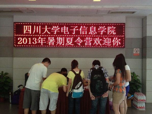 2013年7月5日上午9点,18XXX 2013年暑期夏令营正式拉开序幕。组委会老师及志愿者在报道地点(川大北苑宾馆大厅)热情而有序的接待每一位报到的营员,并耐心地解答他们的问题。至晚上8点,18XXX 2013年暑期夏令营报到工作圆满结束。