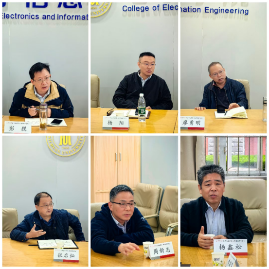 党委书记彭舰、院长杨阳、党委副书记廖勇明、副院长张启灿、信息与通信工程系教授周新志、杨鑫松作为嘉宾,青年教师黄霖宇、芦璐、孙亚平、巨兴兴积极参与,针对如何提升科研与教学能力进行共同探讨。