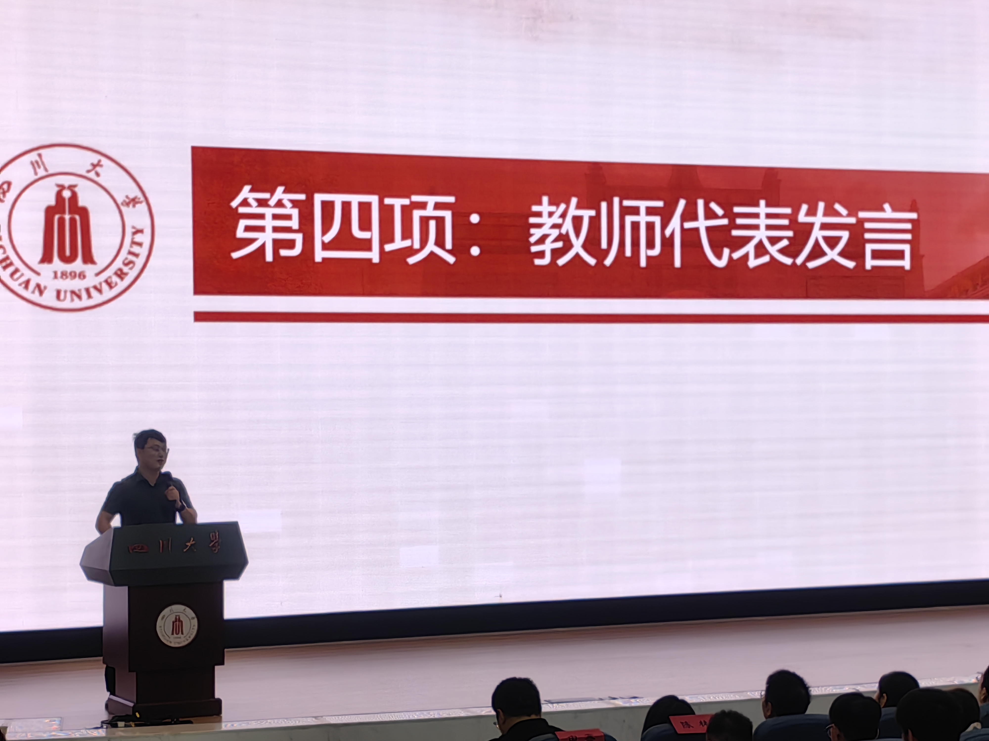 图为教师代表任超老师发言