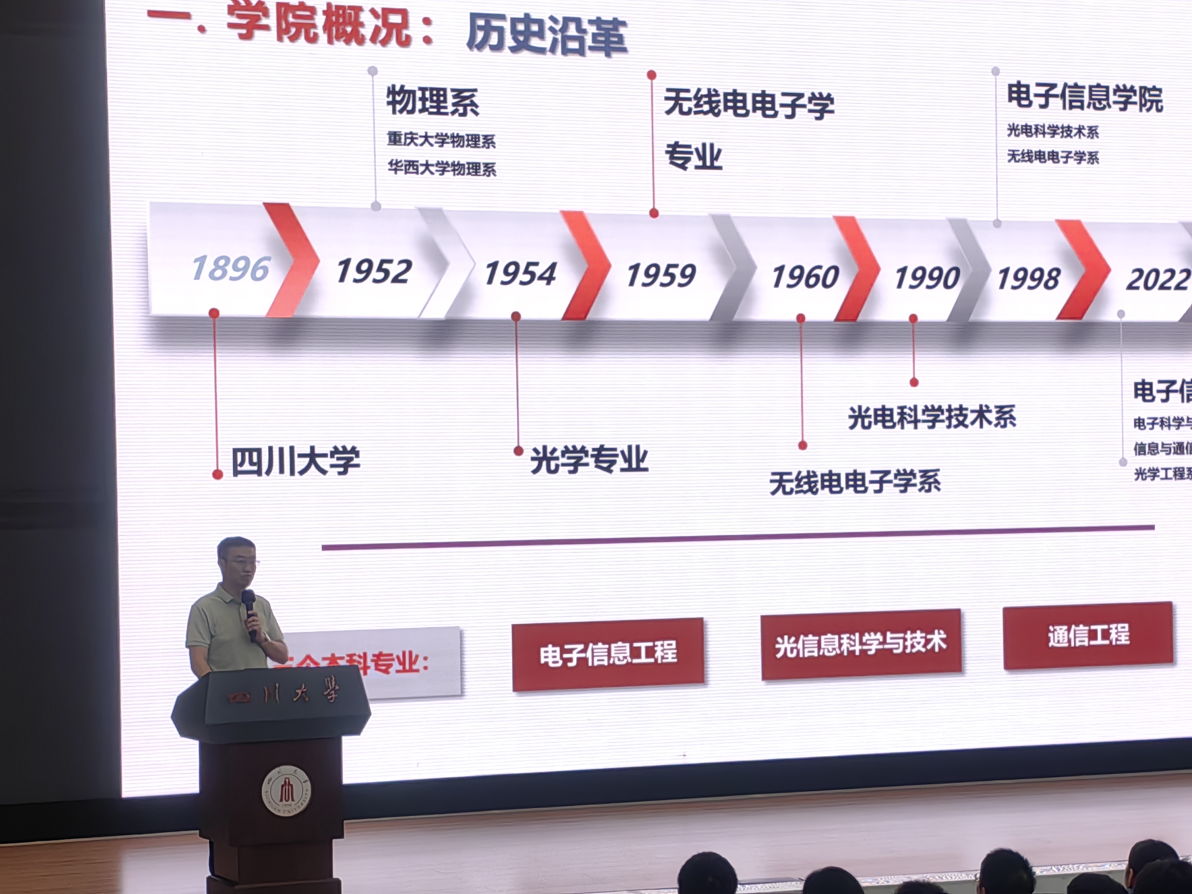 党委副书记廖勇明老师,副处级组织员朱莉副教授,院长助理汪莎教授,信息与通信工程系系主任任超副研究员,信息与通信工程系副系主任孙亚萍副研究员,光学工程系副主任钟哲强副教授,教导员许虹老师,2025级新生辅导员孟滋常老师,学生科陈林老师、申鑫老师和全体2025级新生齐聚现场。典礼由廖勇明副书记主持,典礼在嘹亮的国歌声中开始。