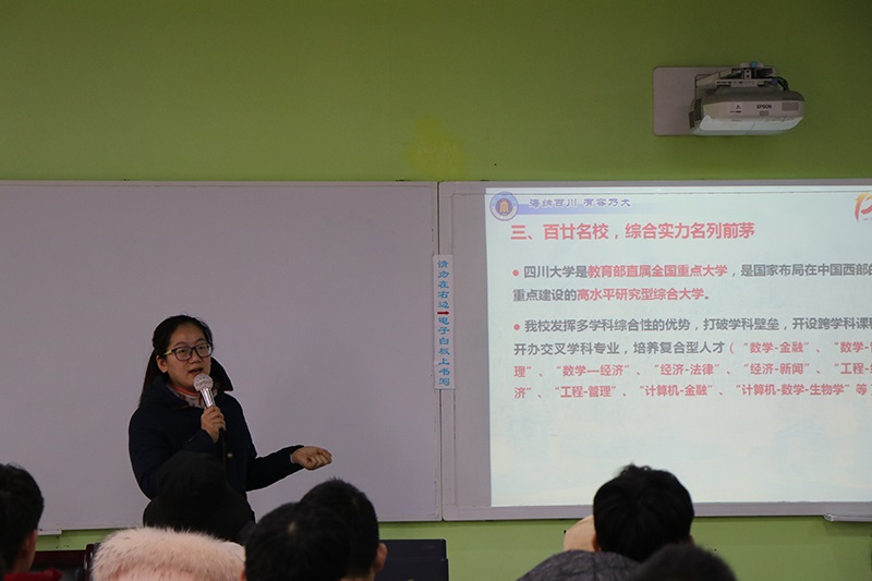 在校学生回到母校,让学弟学妹了解川大,并帮助他们提前了解大学,做好报考准备。为此,吴秀玲老师向在座学生简要介绍了18XXX
