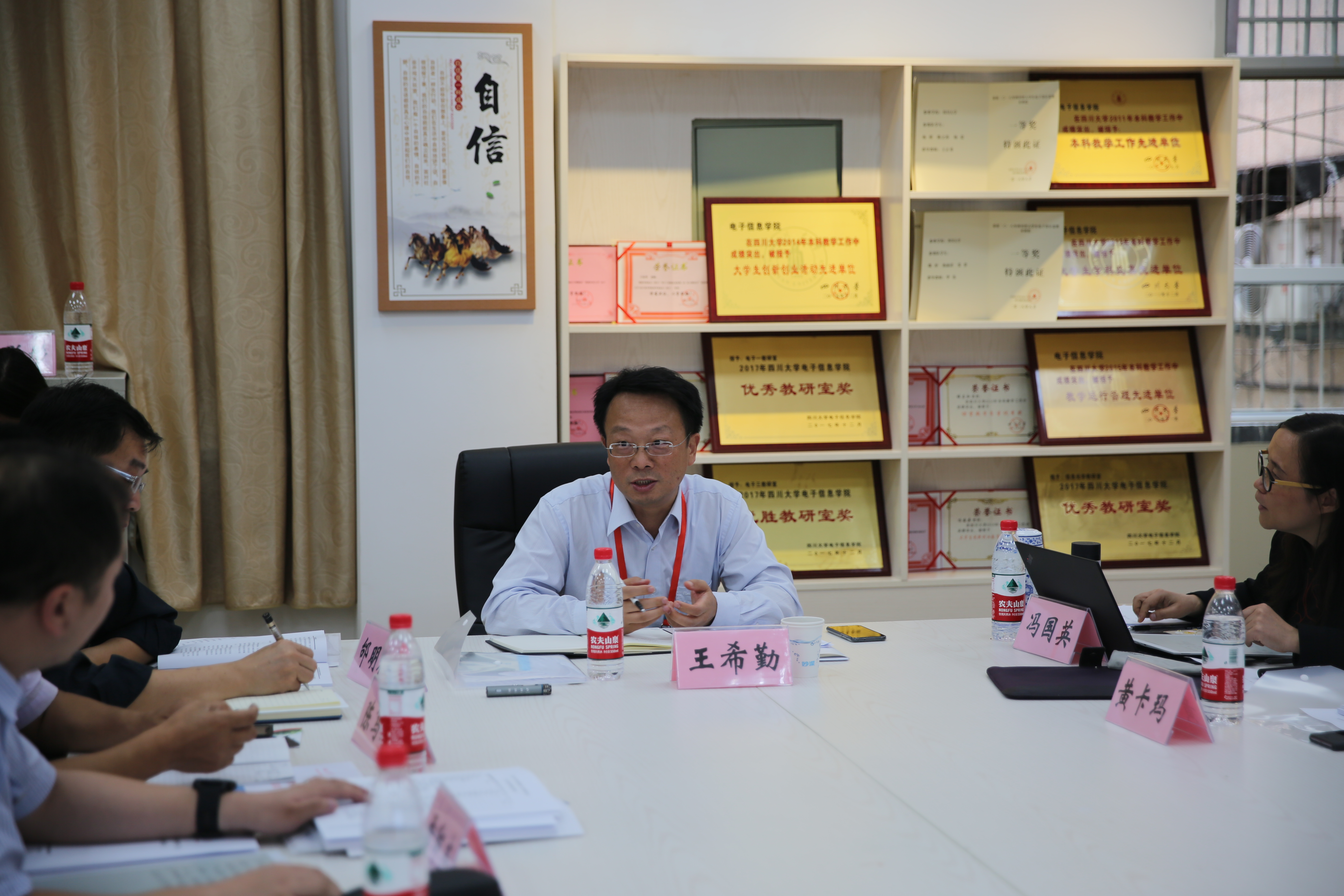 热烈欢迎王希勤教授前来检查本科教学工作,并介绍了参加会议的院领导、教师代表及学生代表。随后冯院长对18XXX的本科教学工作做了详细深入的汇报,王希勤教授在听取汇报过程中,频频对18XXX在本科教育教学改革的举措提出自己的疑惑和见解。王希勤专家指出,本科教学计划要适应国际国内形势的变化,要服务于学生的发展;作为工科18XXX