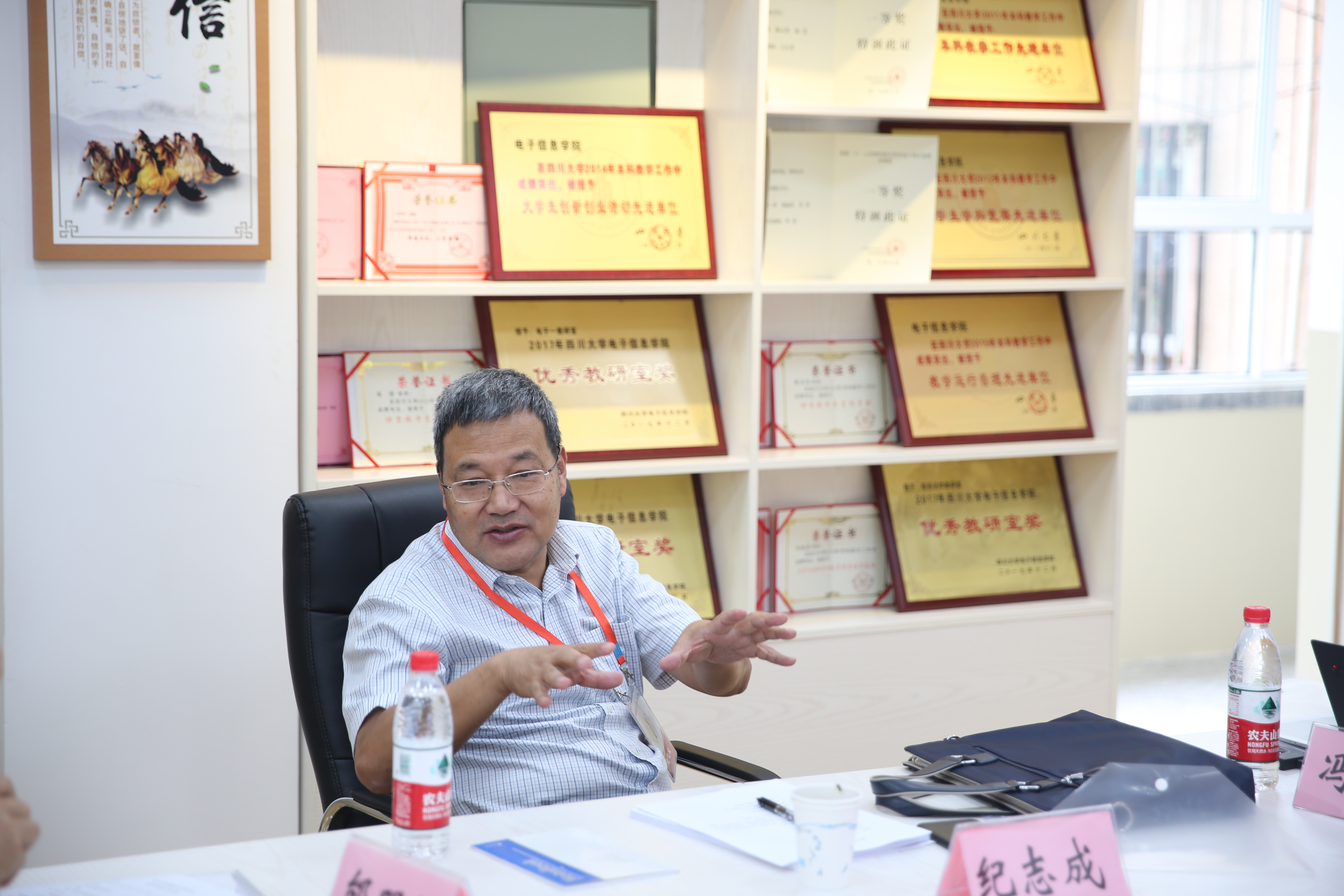 下午14:30,审核评估专家组成员、江南大学副校长纪志成教授来到西五教副楼205评估办公室对18XXX