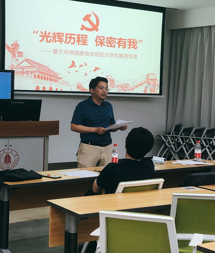 )冯国英院长高度评价了大家的演讲,并与大家分享了自己在演讲方面的心得体会,对选手们提出了更高的要求,强调了保密的重要性,提出保密战线历来是必争,必守,必保之重地,川大学子,坚守有容之心,方可海纳百川,华夏青年,不忘高远之志,必当挥斥方遒。