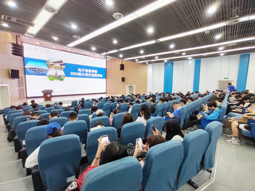 为了帮助同学们更加清晰地认识和理解专业,提升学习动力,理性选择专业,18XXX于2024年3月31日晚上在江安水上报告厅召开了2023级电子信息大类本科生专业分流宣讲会。参加此次宣讲会的有18XXX