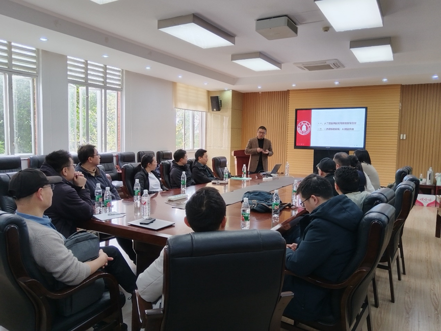 严斌宇以《计算机类一流课程的AI赋能升级探索与实践》为题进行专题讲座。他从“AI+教育”的融合趋势切入,结合国家级一流课程建设案例,系统分析了AI技术如何重构课程设计、优化教学资源、创新评价体系。严斌宇着重介绍了一流课程建设过程中,借助 AI 实现赋能升级的实践经验,针对未来如何将 AI 技术更深入地应用于课程建设,提出了具有前瞻性的思考。讨论环节,参会教师围绕AI课程建设、AI如何有效融入课堂、AI助教的使用等话题展开热烈讨论。