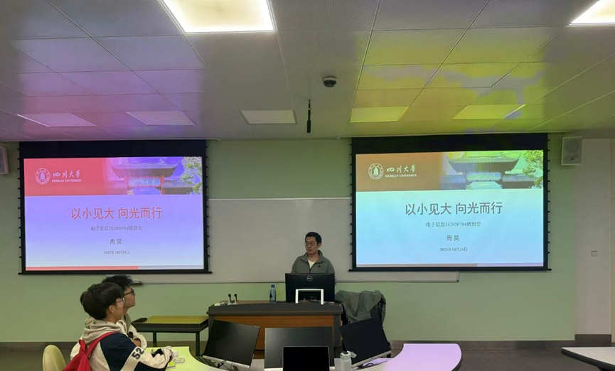2025级704班 “以小见大,向光而行” 主题班会在江安校区一教A108教室成功举行。班主任周昊副教授以“细节积累与成长方向”为核心,引导新生从日常小事入手,逐步迈向理想目标。