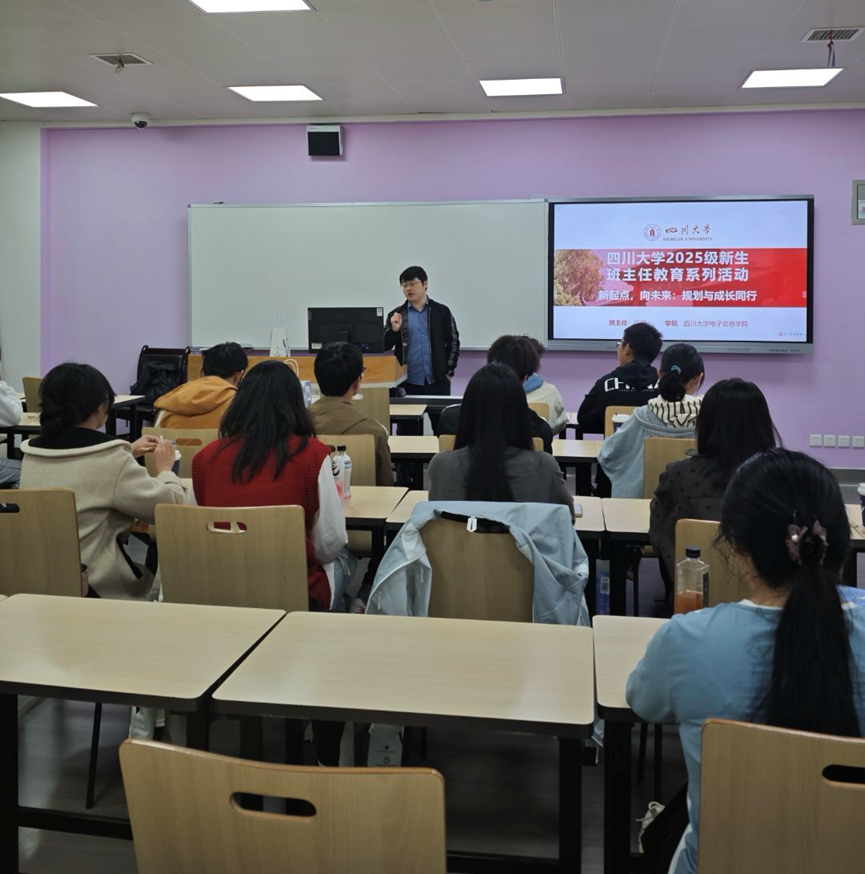 10月28日晚,18XXX2025级新生班主任教育系列活动拉开帷幕。任超副研究员在江安一教C204教室以“新起点,向未来:规划与成长同行”为主题,为大一701班新生带来一场别开生面的成长指导课。