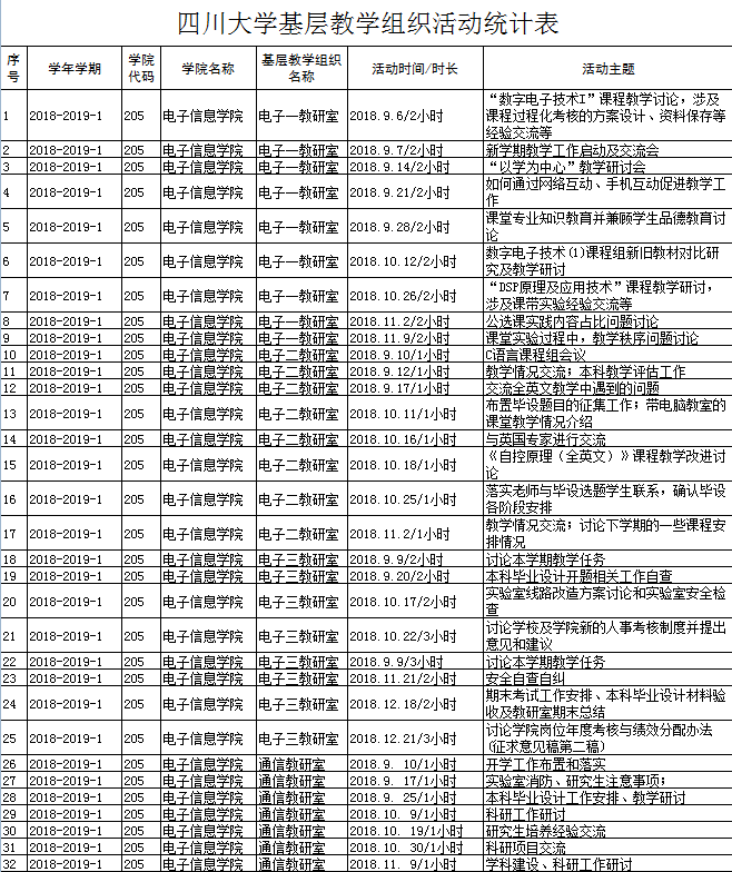 2018年秋季学期,学院各系、教研室认真组织开展了多种多样的教研活动,积极推动了学院的教学、科研工作。