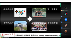 随后,下午两点到五点,各课题组分为两个会场,营员们在学长学姐的带领下在线上认真参观了第一会场的信号与信息处理实验室、人工智能与计算机视觉实验室、图像信息研究团队、物联网与感知实验室、智能控制研究团队、应用电磁学研究团队以及第二会场的信息显示研究团队、三维传感与机器视觉实验室、周寿桓院士团队、中红外超快激光课题组和激光技术研究团队,并聆听了各课题组老师和学长们就每个实验室实验条件、实验功能和科研成果等基本情况的介绍,体验了各课题组的科研内容和成果。