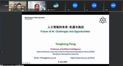2022年7月6日14:00,英国曼切斯特城市大学人工智能教授(Professor of Artificial Intelligence) 、曼城大校级“先进计算科学研究中心”(Centre for Advanced Computational Science, CfACS)主任彭永红教授应18XXX18XXX