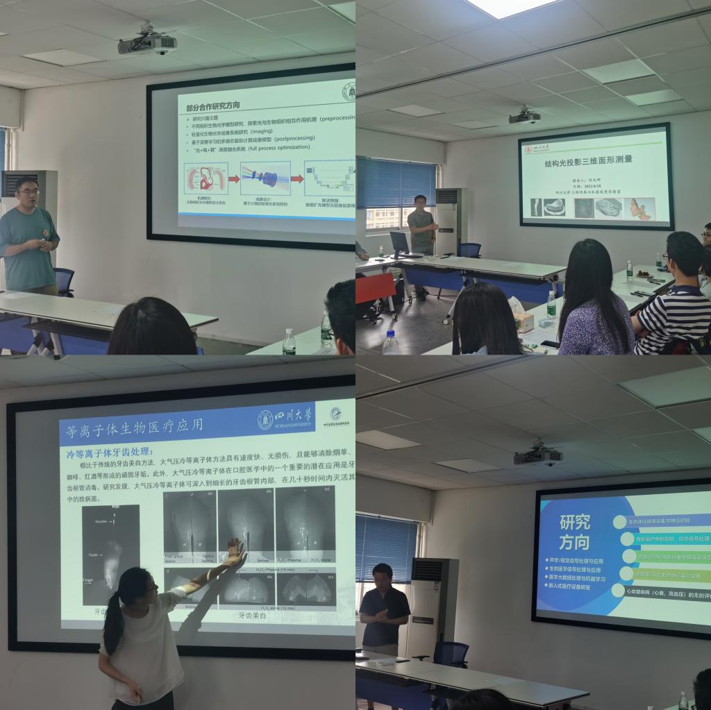 开展医工融合交流。双方就“光声成像技术在颌面部疾病诊断中的应用探索”和“光电技术在口腔医学中的应用探索”两个主题进行了交流和探讨。18XXX