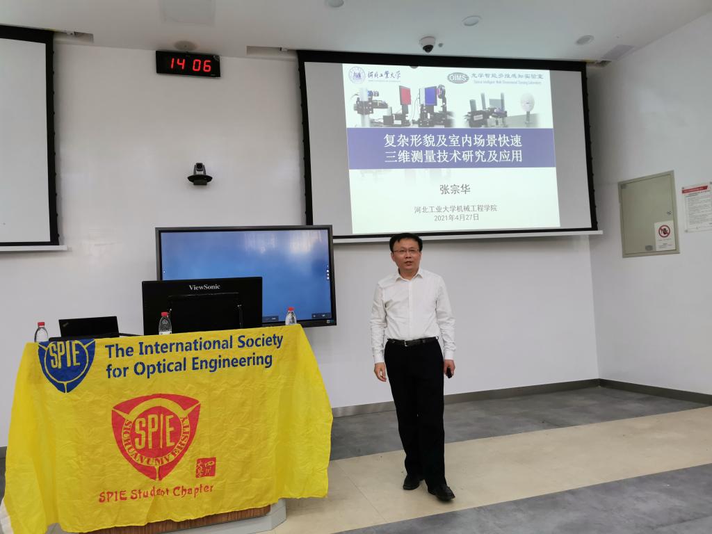 下午2点,张宗华教授以“复杂形貌和室内场景光学三维测量技术研究及应用”为主题带来了精彩的学术报告,对漫反射表面的三维测量以及镜面三维测量进行了详细介绍,参与报告的各位老师同学与张宗华教授展开了激烈的讨论。
