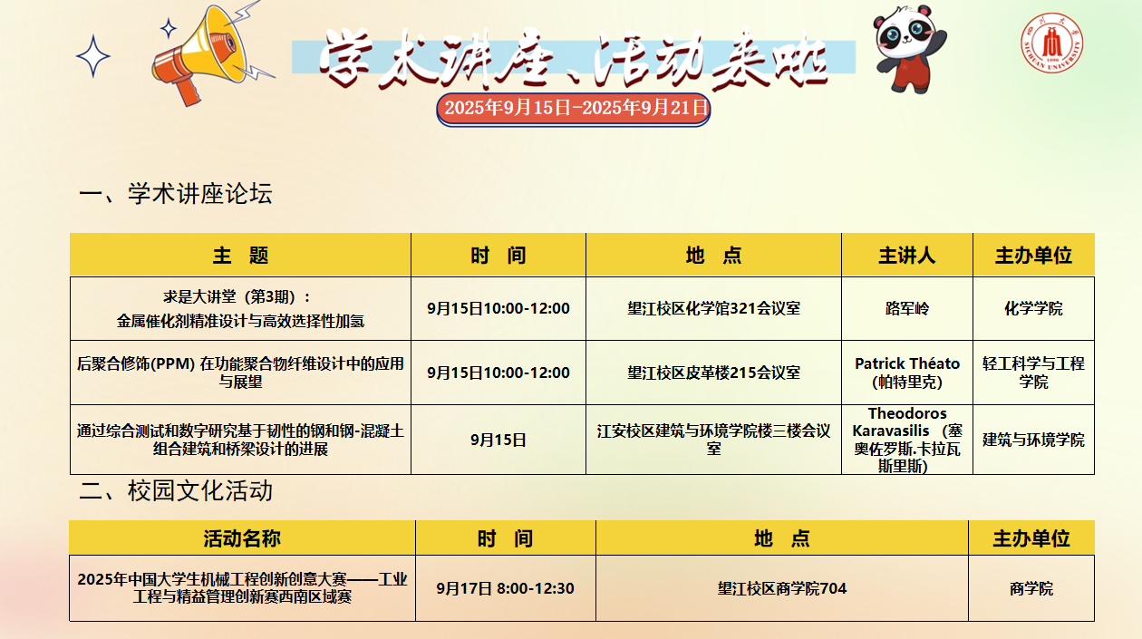 2025年9月15日-2025年9月21日学术讲座、活动安排
