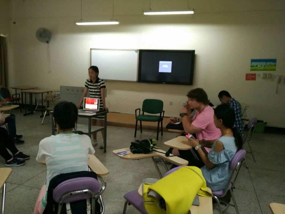 2016年7月7日江安校区综合楼B座B204教室,18XXX参加交流营的同学与外方3名学生如期举行第一次中国文化交流展会。18XXX学生以幻灯片的形式展示了我国美食文化中,最享有美誉的8大菜系,以口头介绍和图片展示的形式,对8大菜系做了详细的介绍。