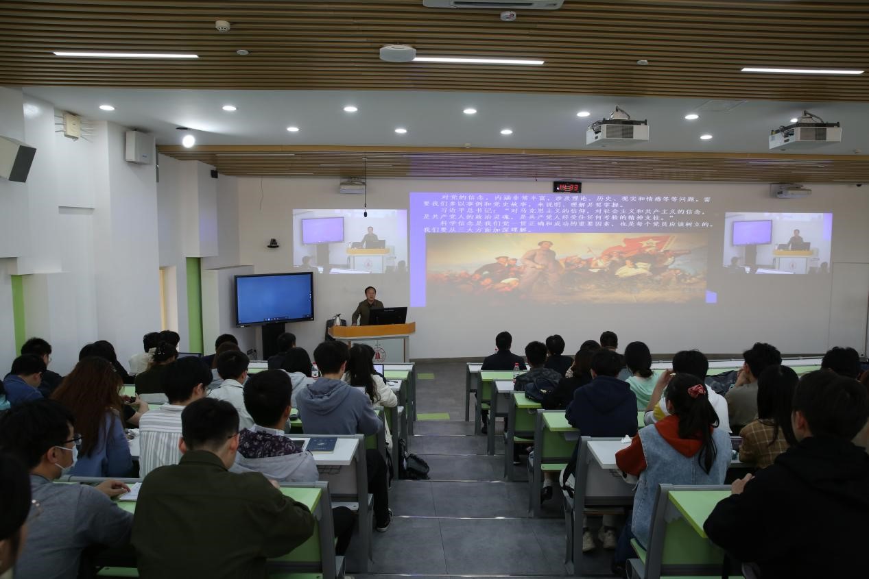 最后,张诚教授以习近平总书记在党的二十大报告的一段话与同学共勉:“广大青年要坚定不移听党话,跟党走,怀抱梦想又脚踏实地,敢想敢为又善作善成,立志做有理想、敢担当、能吃苦、肯奋斗的新时代好青年,让青春在全面建设社会主义现代化国家的火热实践中绽放绚丽之花”。