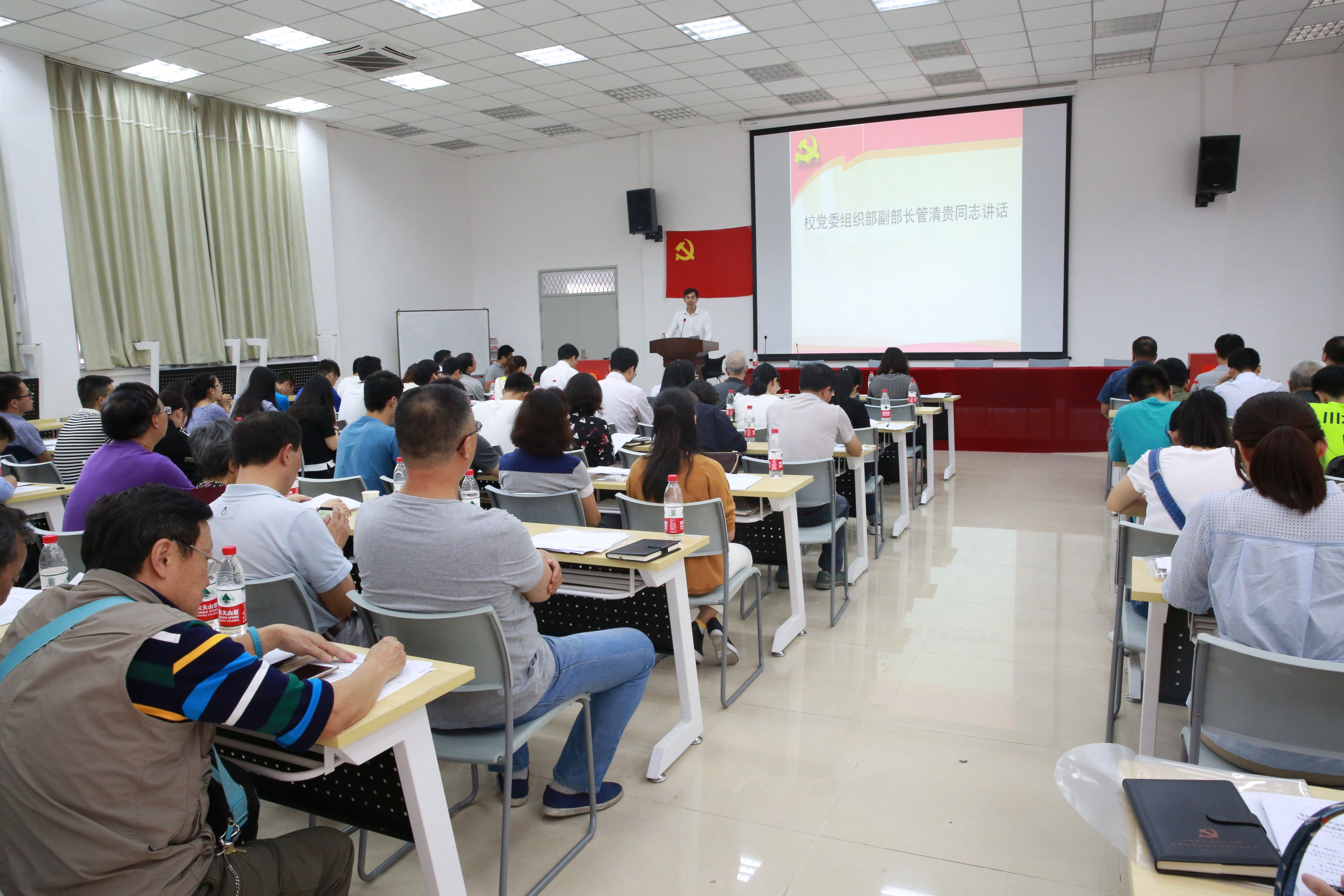 正式会议首先由校党委组织部副部长管清贵同志上台发表讲话,管部长表示学校目前在党建等方面取得了众多成就,感谢18XXX