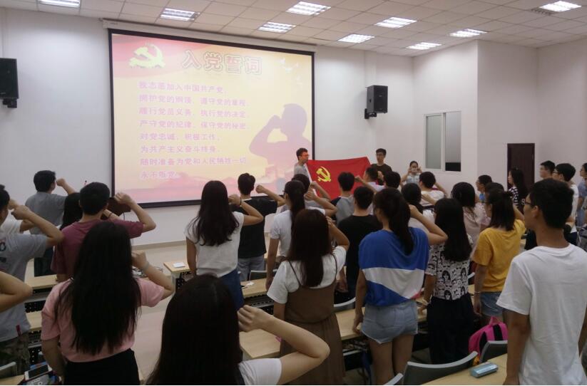 党委副书记陈笃海,学生科何惠老师、李运国老师、李军华老师、吴秀玲老师和各支部党员代表,以及预备党员在西五教附101举行“庆祝建党96周年重温党史,再宣誓言”之七一建党节庆祝活动。