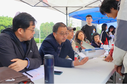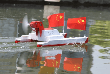 党委邰明松书记宣布本次船模设计大赛决赛正式开幕。在最先进行的答辩评分环节中,参赛选手们向评委们介绍自己船体的相关理念和技术,同时评委们也提出了一些专业问题以更好的了解同学们的设计思路。下午一点半,哨声一响,精彩纷呈的水上竞速环节正式开始。选手们聚精会神地操纵船只,在各个浮标之间穿梭,完成一次又一次完美的转弯。红旗在船模上高高飘扬,欢声笑语响彻在景观水道上空。下午五点半,随着最后一艘船抵达终点,本次船模设计大赛圆满落幕。