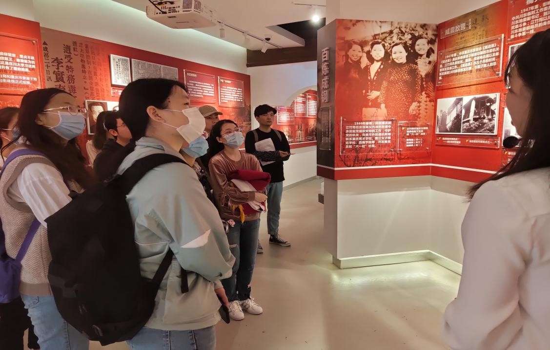 上午10点,学生代表们来到江姐(江竹筠)纪念馆参馆,回顾江姐时期那段救亡图存的峥嵘岁月,加深大家对川大校友烈士的英雄革命事迹的了解。以江姐为代表的川大人将治学与救国紧密结合,满怀民族斗志,让我们切实地感受到了校友江姐的不畏艰险、勇于抗争、积极动员、爱国奉献的红色基因。学习江姐精神,就是要学习和传承她忠于理想的共产主义精神、为国为民的奉献精神、追求真知的进取精神、坚贞不屈的斗争精神,我们要用红色文化立根、铸魂、打底色,这样才能有助于增强同学们作为新时代研究生的使命感和责任感。