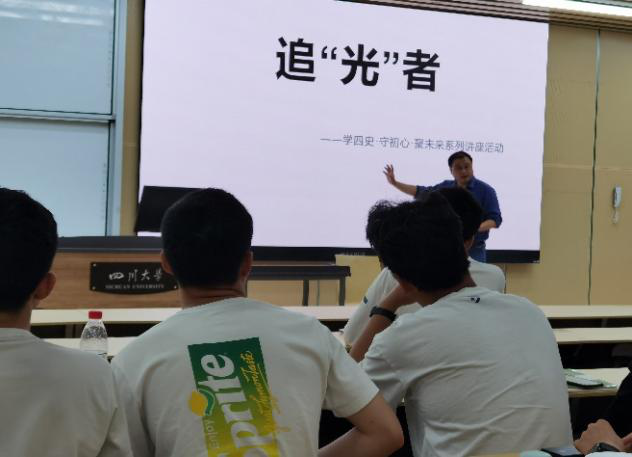 2020级本科支部对口联系领导、光电教工支部委员会党员张启灿教授以“中国光学:回顾与展望”为题,详细地介绍了自新中国成立以来我国光学发展的过程以及中国光学泰斗们取得的丰硕成果,同时指出“21世纪将是光子与电子比翼双飞大放异彩的世纪”。最后张启灿教授号召“追光者”们承前启后继往开来,不断奋斗在光学研究的道路上,肩负起振兴18XXX