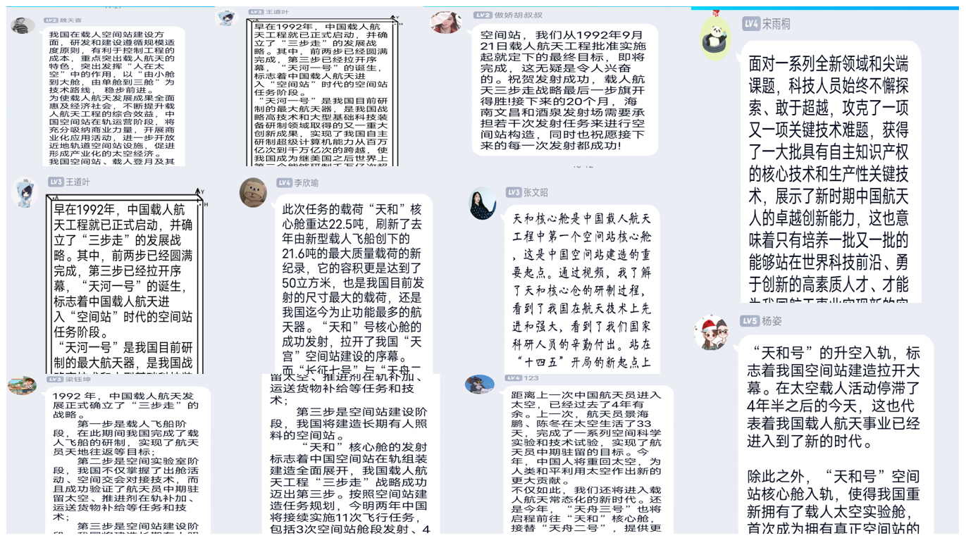 2018级本科第一支部于2021年4月29日,线上组织学生党员进行中国空间站首舱“天和核心舱”新闻学习讨论活动。