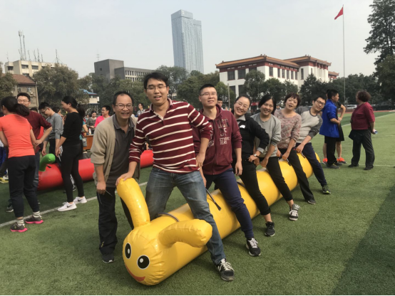 2018年10月26日,2018年校教职工运动会如期举行。上午九点半,18XXX 的运动健儿早早排在绕杆踢球检录处,热身练习。今天18XXX 老师们参加的团体项目有:毛毛虫竞速、绕杆射门青年组、绕杆射门中年组、抛球入筐、12*60米男女混合迎面接力、4*100米男子接力赛、4*100米女子接力赛。老师们在这些团体项目中,团结合作,奋勇争先。老师们对运动会这类团体活动非常认同,并期待更多丰富多彩的活动去参与。