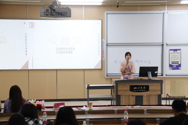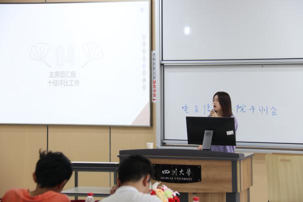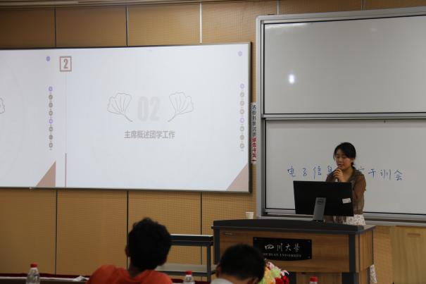 分团委学生会第三次干训会在江安校区综合楼C座C306教室顺利举行。2021级兼职辅导员孔洁老师、学院分团委学生会主席、各部门负责人及干事参与了本次会议。