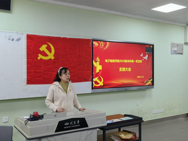2020级本科第一党支部支部大会在一教D102召开。2020级辅导员兼支部书记陈晓娟老师主持了本次会议,并发表重要讲话。