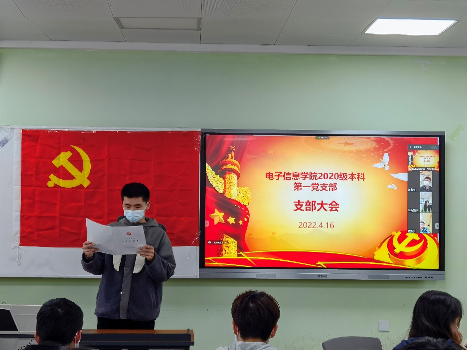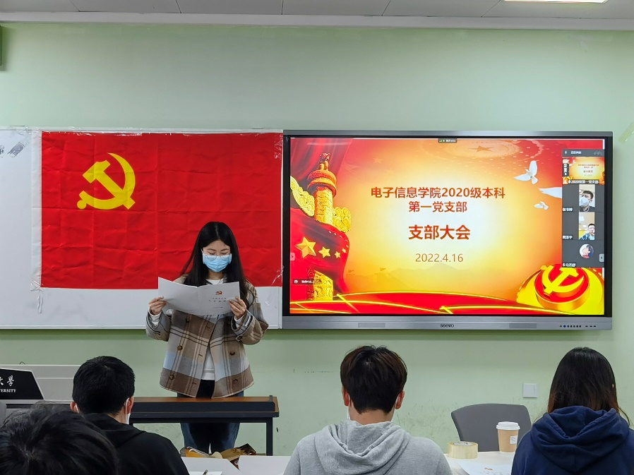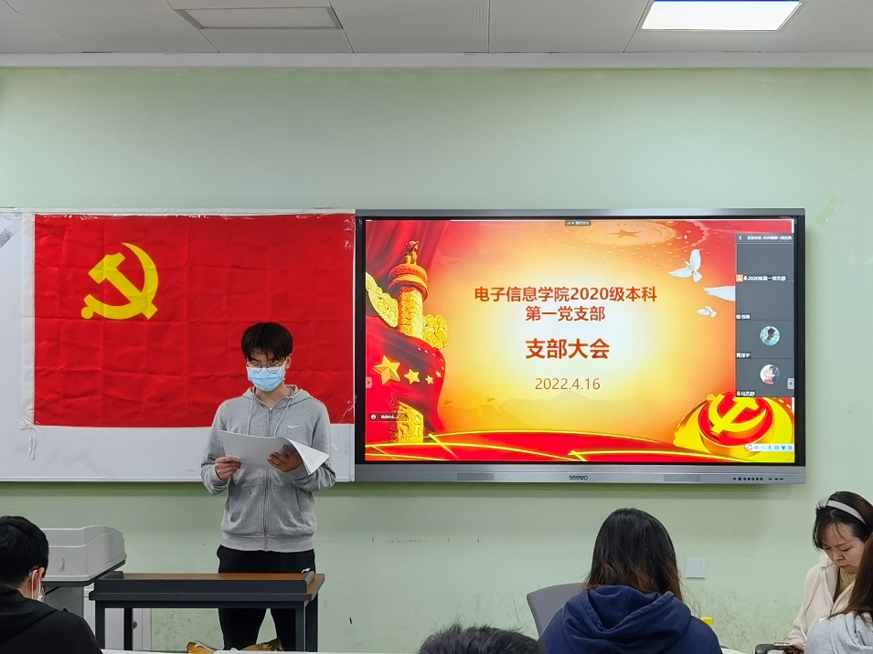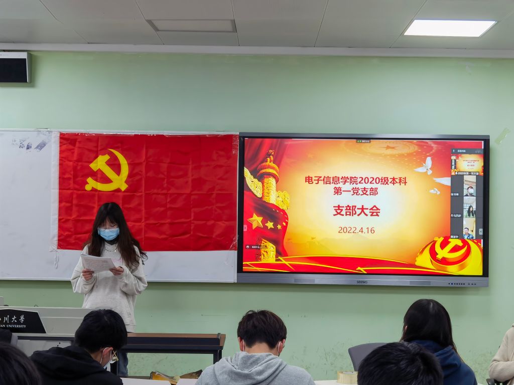 2020级本科第一党支部在江安校区一教D102召开支部大会,2020级辅导员兼支部书记陈晓娟老师主持了本次会议,本次会议主要对李钰晶、刘建乐等共计14位发展对象是否成为预备党员这一问题进行了表决。