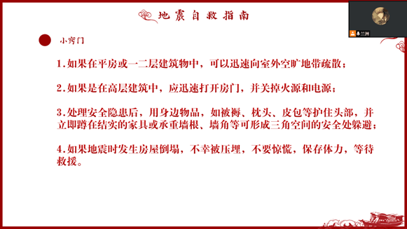 2019级本科生全体同学通过腾讯会议和微信小程序等方式积极参与了本次防灾减灾专题学习。