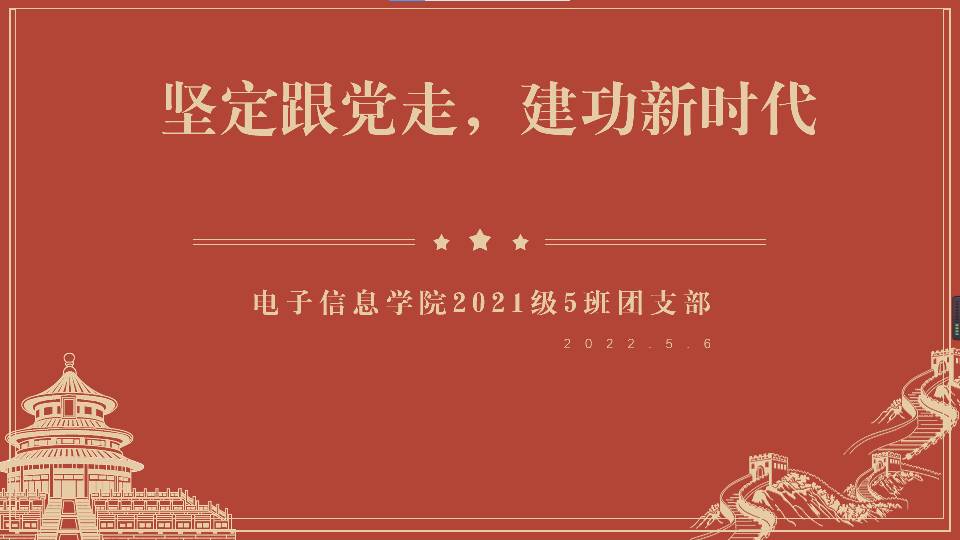 本科2021级5班团支部于2022年5月6日在江安一教A201举办了以“吾辈青年当自强,振兴中华勇担当”为主题的团日活动。