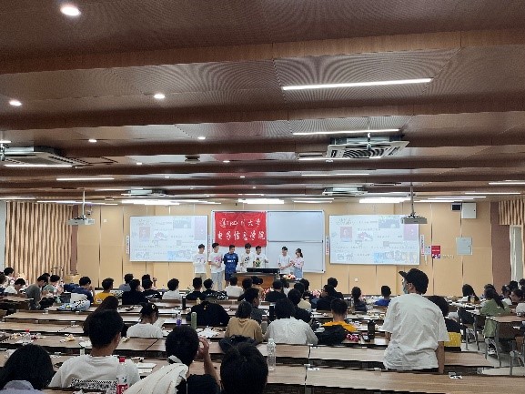 在活动的准备过程中,主席团准备例会内容、宣传部进行活动宣传、创就业与外联中心准备小零食,更有各个部门的同学团结协作,为此次活动成功举办打下坚实基础。在主持人慷慨激昂的开场白中,以“共‘E’电子路,一起向未来”为主题的团学第一次大例会正式拉开序幕。