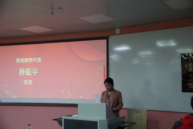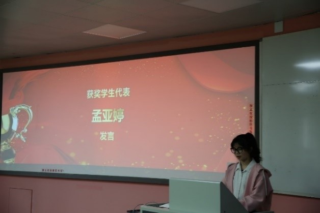 获奖教师代表孙亚平老师发言 获奖学生代表孟亚婷同学发言