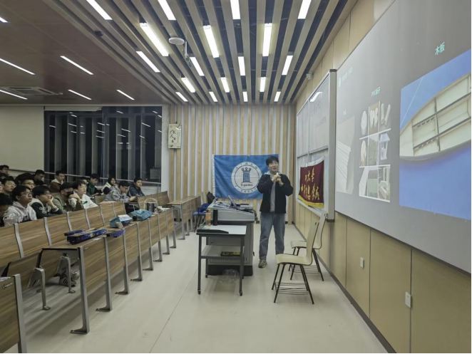 晚上7点30分,第十四届船模设计大赛宣讲会正式开始。首先,主持人进行宣讲会流程介绍和嘉宾介绍,并对船模大赛进行赛事历史比赛流程、比赛规则、比赛规模、奖励机制等赛事细则进行逐一介绍。在此之后,由与会嘉宾20届学长甘序和李宇宁进行船模大赛的经验介绍,包括对船模的分类、船模的构成、船模制作时可能遇到的困难等的介绍,其中重点向我们介绍了船模制作设计的硬件以及软件部分的知识,为同学们梳理了制作思路。最后,两位嘉宾为与会听众进行现场答疑。