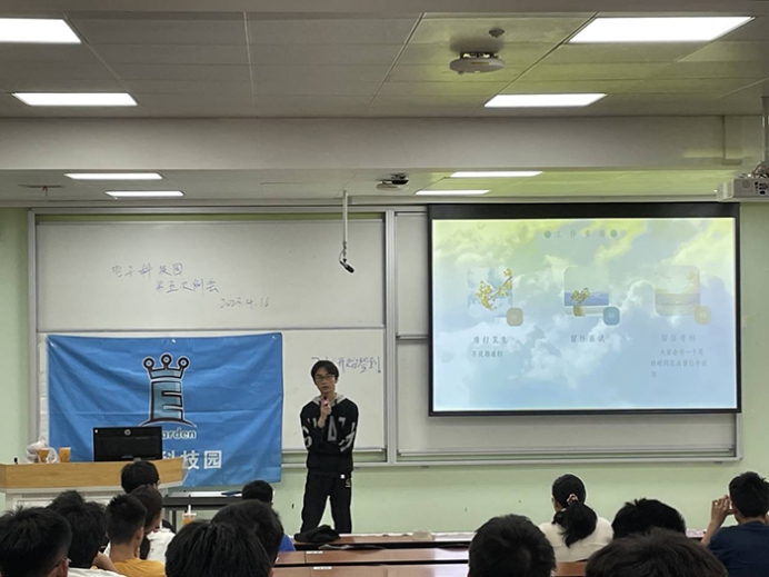 江安校区一教B102举行。出席例会的有电子科技园主席团人员、各部门部长及副部长、全体科技园干事。
