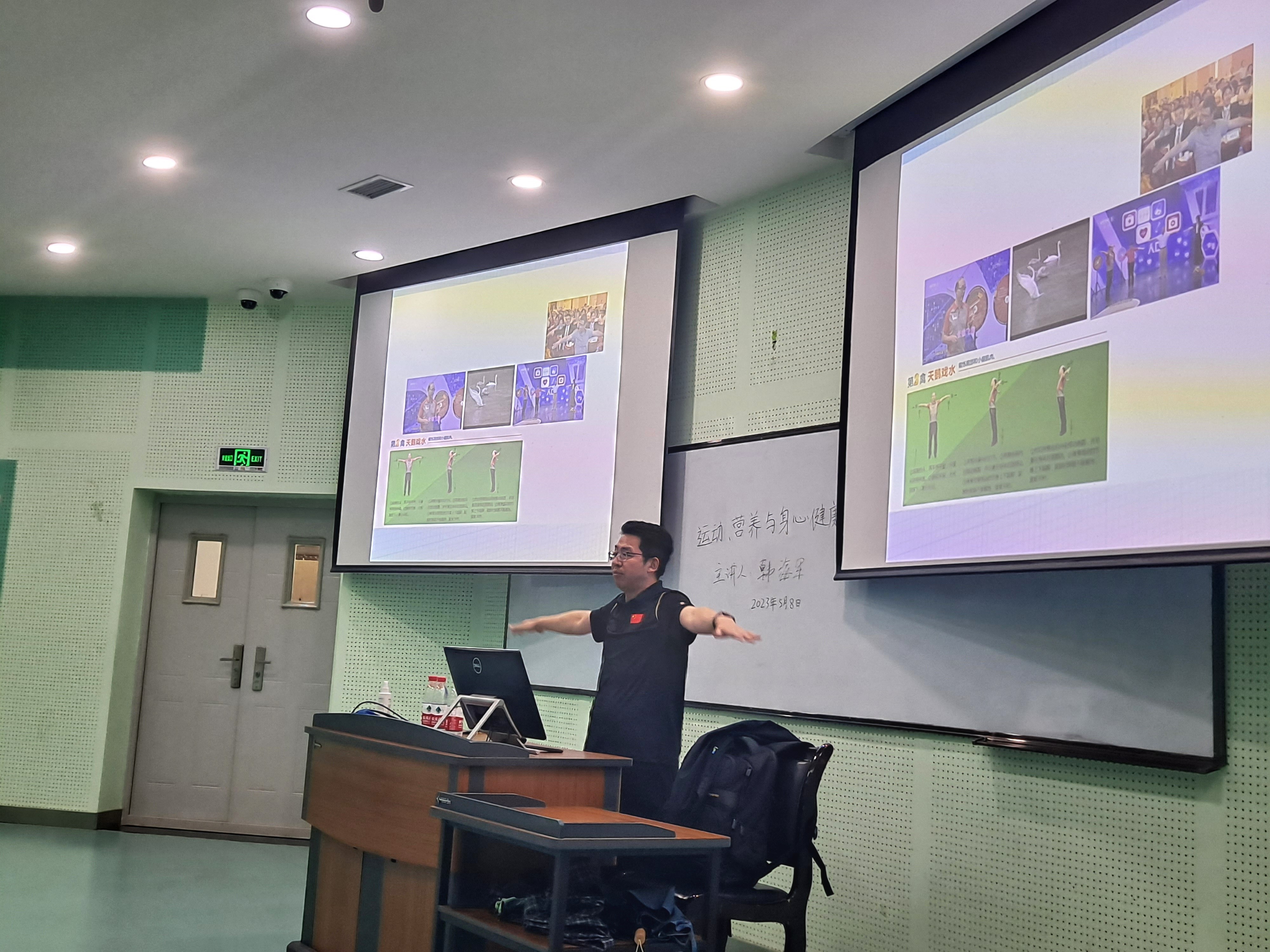 讲座过程中,韩老师介绍了国人健康的现状以及诸多危害健康的行为,并强调了生活方式是健康的关键。随后韩老师就“运动”与“膳食”这两大方面分别进行重点介绍。在运动方面,韩老师介绍了运动的含义及分类、运动与健康的关系、合理的运动方式以及运动的误区与不当方式。接下来,韩老师就“管住嘴、迈开腿”阐述了科学合理的膳食搭配准则与合理运动的重要性。最后韩老师介绍了不同人群的健身方法并提供了一些简单有效的运动方式。讲座结束后,何惠老师对本次讲座进行了总结并再次感谢韩老师的分享,同学们用热烈的掌声感谢韩海军老师作的精彩讲座。