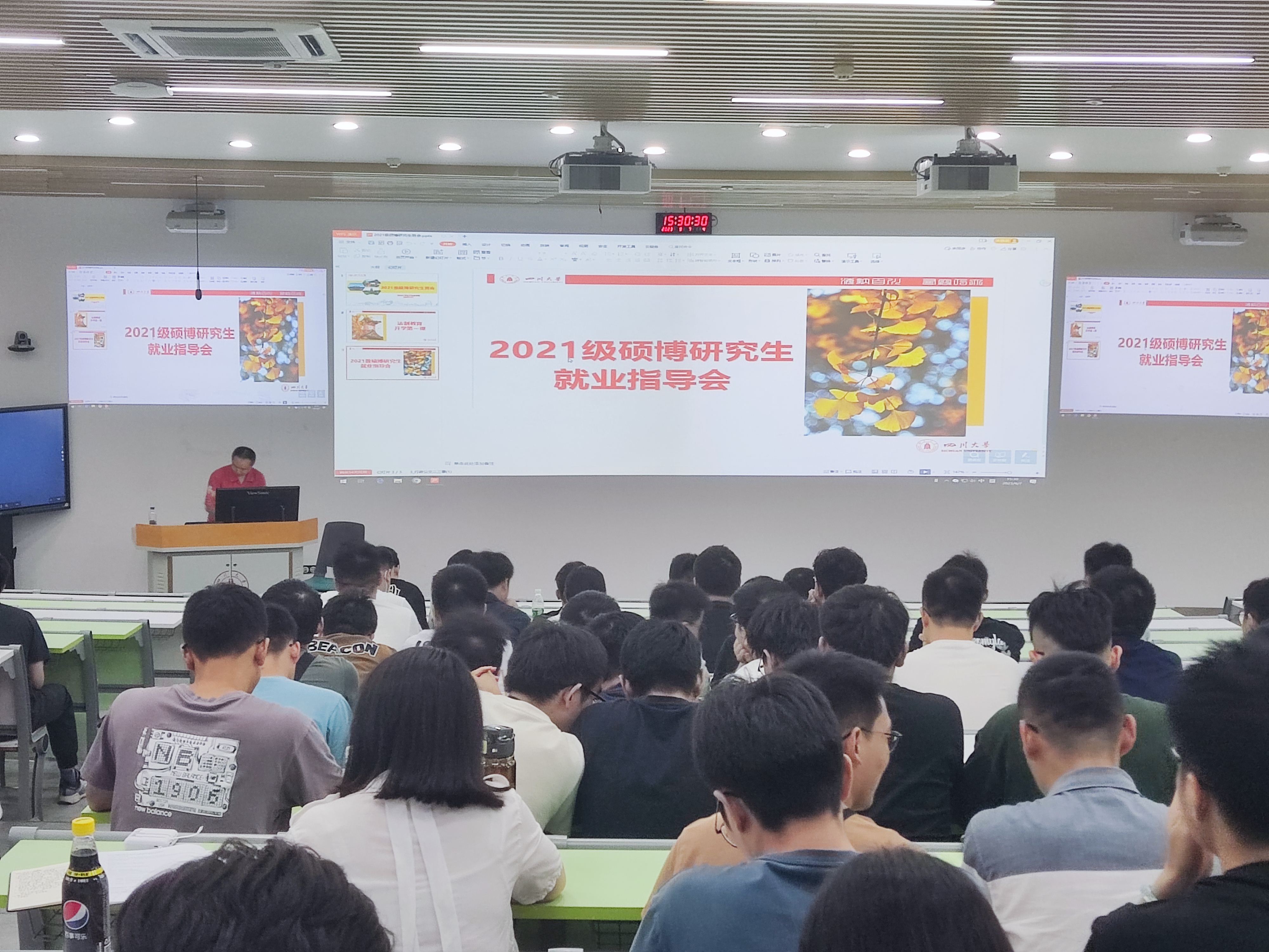 于2023年9月7日下午3:00在望江基础教学楼C座201教室举行了24届硕博士研究生年级大会和就业指导会。