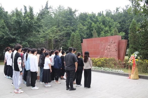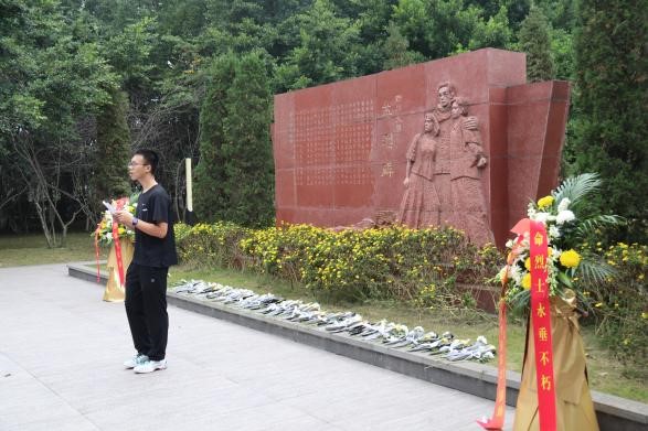 本次活动由2022级学生代表吴子竞同学主持进行。活动开始,由2022级高山荔同学进行《致敬,伟大的烈士》诗歌朗诵,以弘扬烈士精神。随后,2023级学生代表叶果同学进行发言,带领同学们了解英烈事迹。发言结束,全体师生肃立致哀,追忆万千英烈,在烈士碑前默哀三分钟。默哀完毕,全体师生代表依次向烈士敬献花圈,向烈士们表达崇高的敬意。最后,全体师生瞻仰烈士碑,告慰烈士英灵。