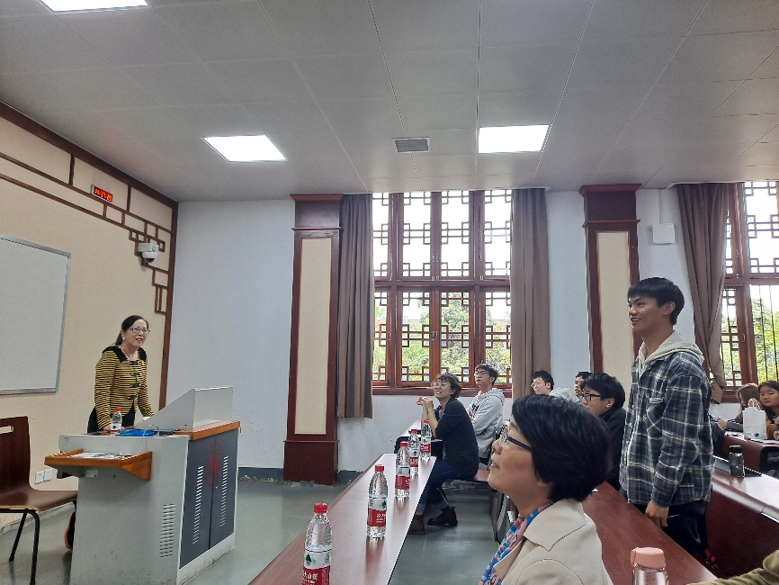 本次讲座由何惠老师主持。首先,何老师向全体老师和同学简要介绍了本次讲座主讲人王颖老师的教育背景、工作经历以及代表作情况,并热烈欢迎王颖老师到18XXX