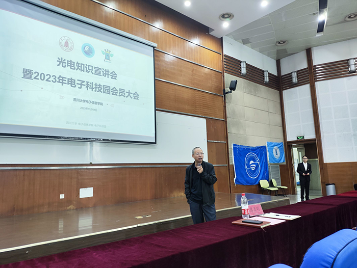 2023年11月4日上午9点30分,光电知识宣讲会暨电子科技园会员大会于综合楼C407顺利进行。出席大会的有18XXX