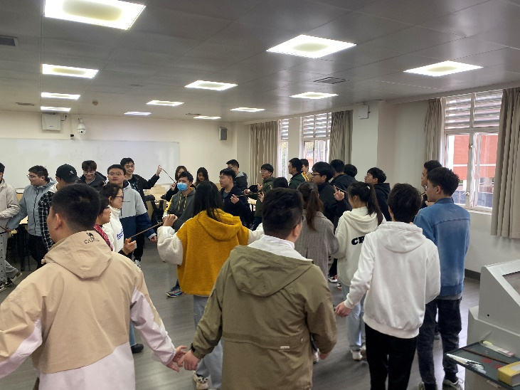 在活动的最后环节,何老师带领同学们互动,如背靠背依靠、照镜子、双人舞、四人舞、多人舞、团体舞等等,引导同学们看到这些简单的活动背后的深刻含义:人际关系是互动出来,没有一个人可以独活于世,在人际关系的维持中,需要保持适当的距离,需要共同维系,不可一方全然的奉献另一方全然的接受。