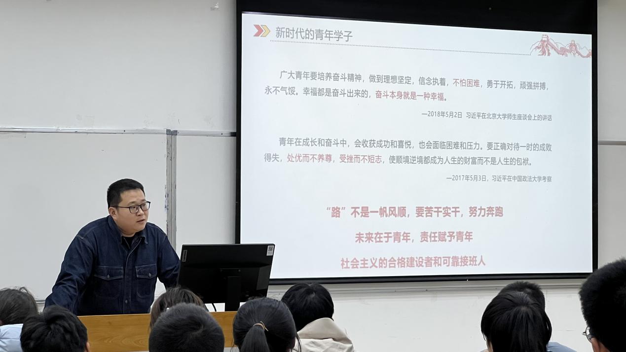 随后,申鑫老师为本科2023级新生学生干部讲授了主题为《凝聚青年力量 感悟青年使命》的干部培训课。会议中,申鑫老师以